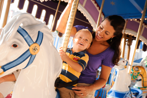 Take flight above Storybook Circus with Goofy in a homemade stunt airplane for a thrilling junior roller coaster ride.